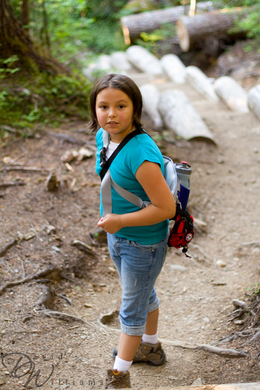 About the photo, okay, really…two things about Cait in the photo. First, the little red bag is our first aid kit (she loves that it’s a little backpack) and second, she just LOVES the hiking boots we got her. She totally wore them around the house for the first few days (typical nine year old antics).