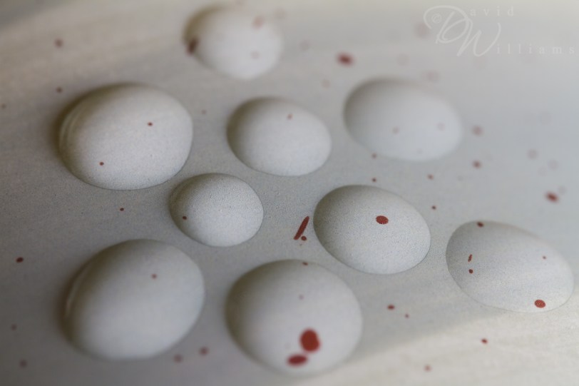 I read the assignment this morning at approximately 6:20 a.m. and had the idea of having water droplets on the back of a cookie sheet. I tried it after I got home from work and didn’t like the colours so quickly threw that idea out. The next idea…plates. That image didn’t even make it into the camera as the water droplets dispersed as soon as it hit the plate. Great…so now what? As I was rummaging through the kitchen cabinets, Amy’s coffee mug caught my eye and woot, it worked! Enjoy…