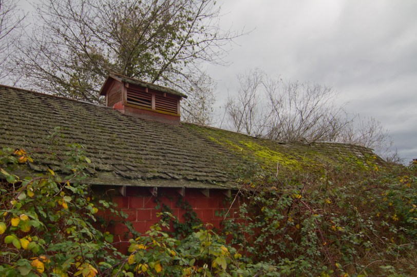 Nice capture of the building showcasing Pacific Northwest… moss on the roof, blackberry bushes every where, and of course; the lovely gray sky. π