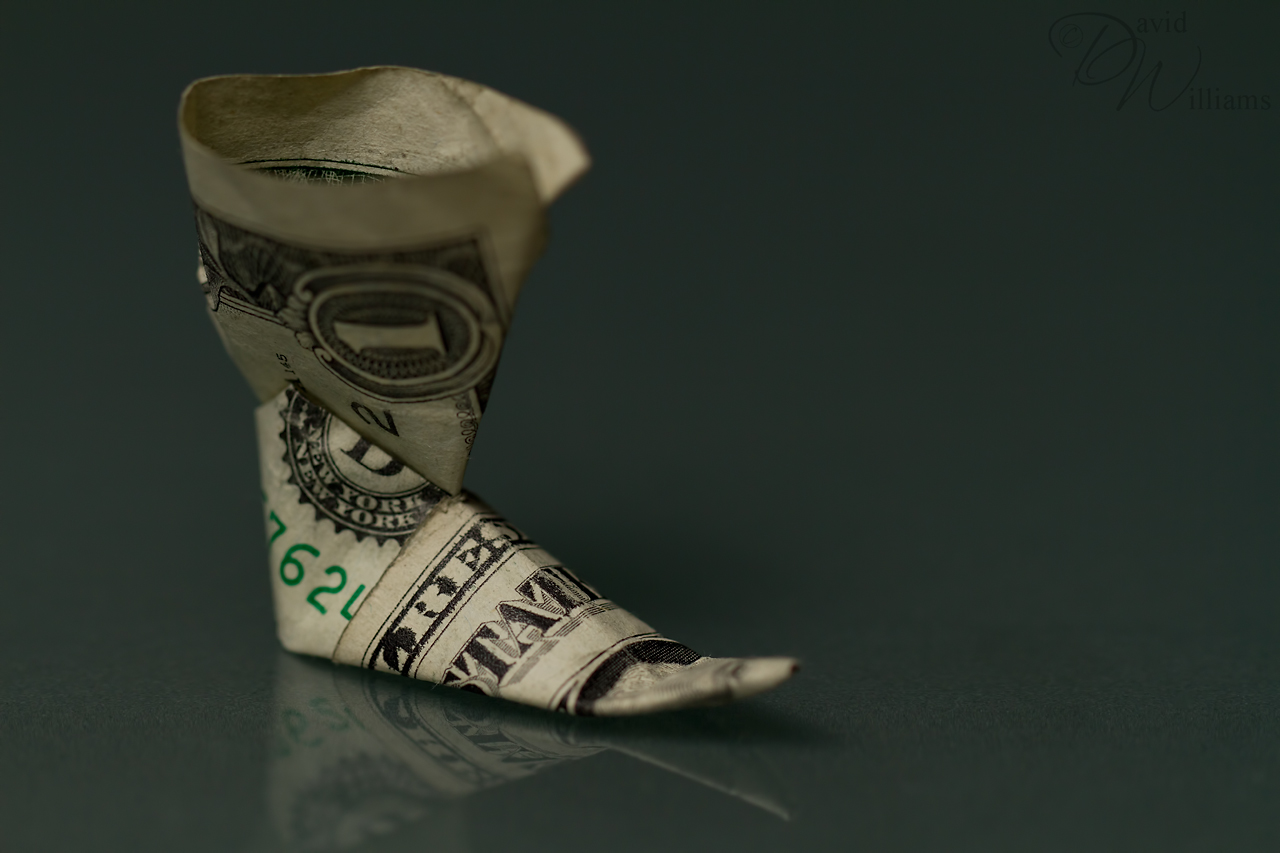 I received this origami boot recently and it brought a smile to my face as it reminded me of a pair of boots (which I still have mind you) less the buckles. If you are wondering, no, I do not have the mad master origami skills to make this! πŸ˜›