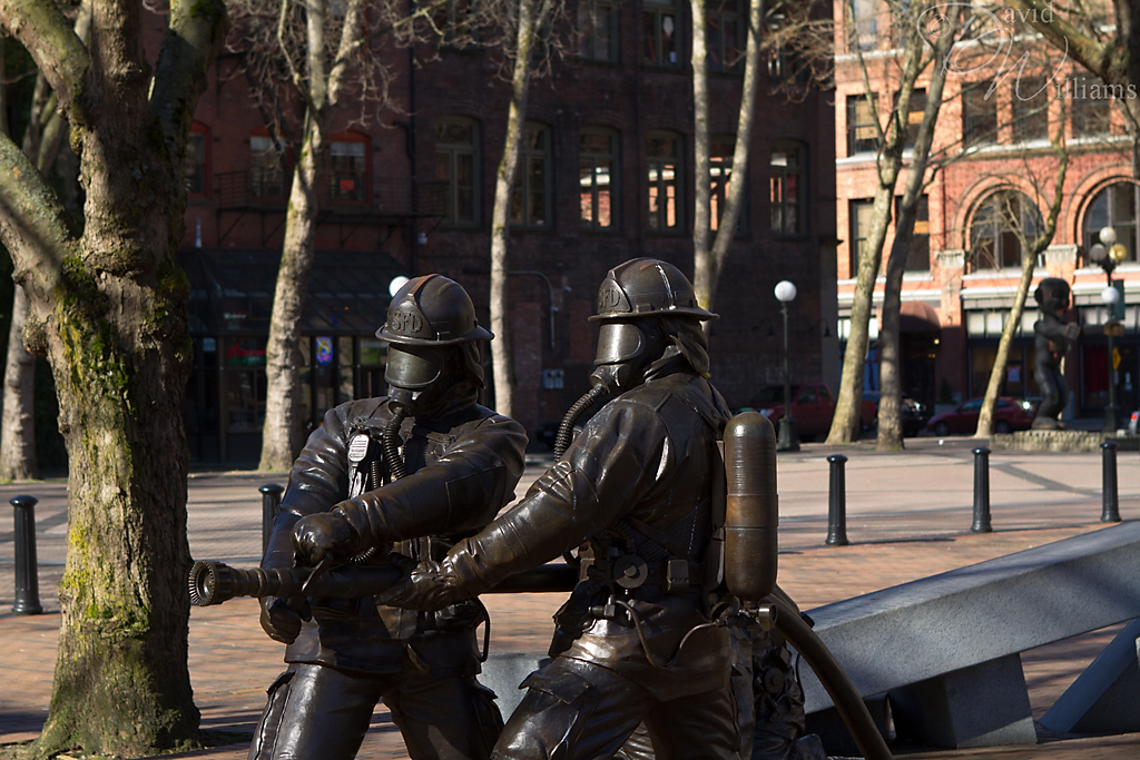 There’s a memorial in Seattle’s Chinatown International District which was inspired by four firefighters who lost their lives during a warehouse fire in 1995. Although it was inspired by those four brave souls, it’s a tribute to all the firefighters who have lost their lives in the line of duty since the SFD was established in 1889. If you are in Seattle, they can be found in Occidental park. To read more (and where I found this information), please visit the >>SFD’s memorial page<<.