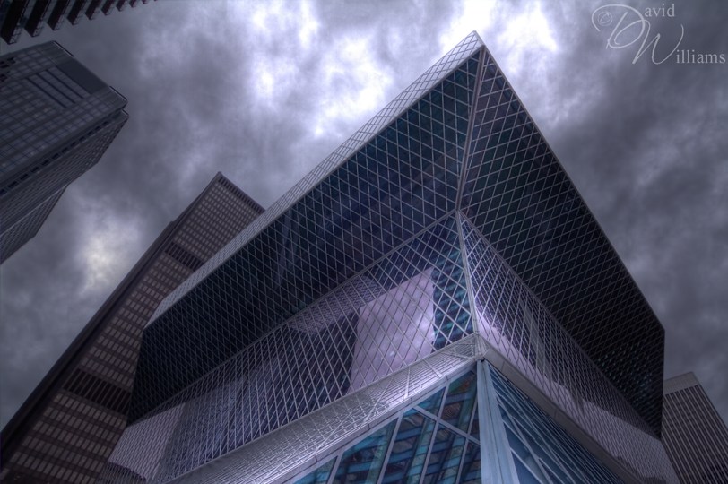 A shot I took early in Feb while in Seattle. This is the Seattle Public Library which, if you ask me, is a killer looking building! While this is not a “true” HDR image, I did throw it into Photomatrix Pro and processed the single RAW file to get this effect.