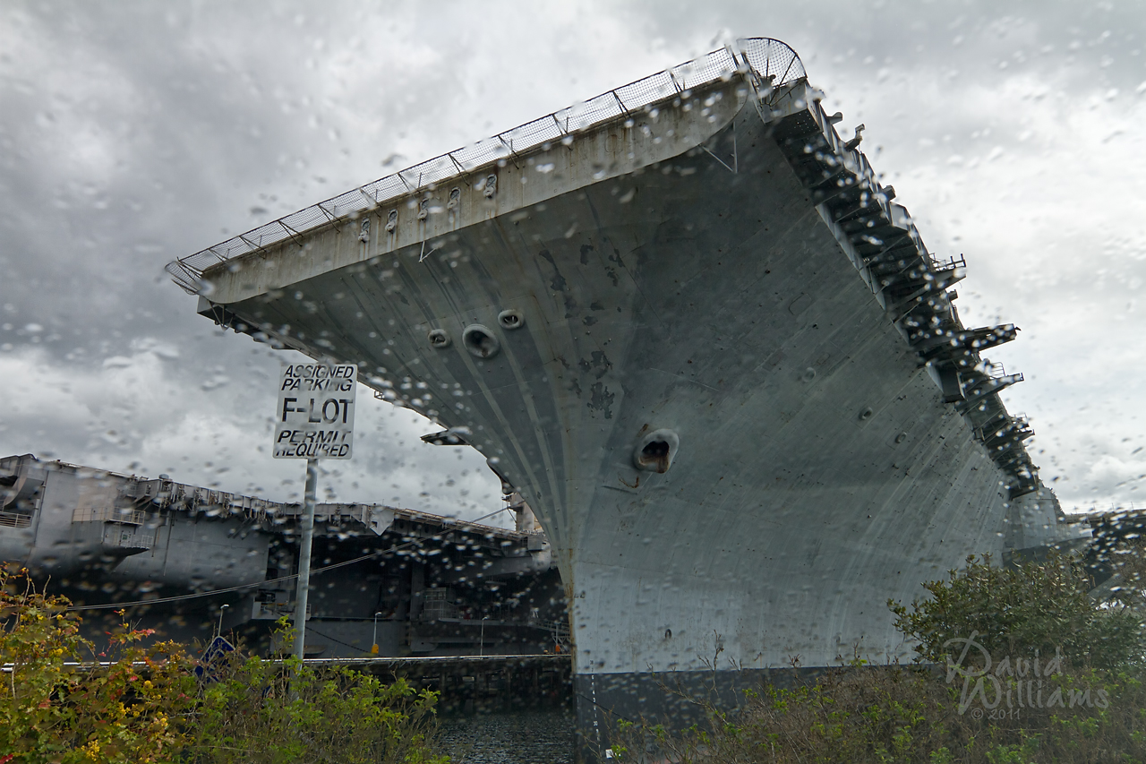 Yes, it was raining…shocker right? Rain in the Pacific Northwest…never! Devon and I took a little excursion this weekend (we were visiting family) and hit up the Puget Sound Naval Ship Yard. Now, we drove around and around and ended up in this parking lot which overlooked two of the carriers, the USS Independence (as shown) and the USS Kitty Hawk. Don’t know if we were suppose to be there, but never the less, we were. As we were getting ready to leave, I looked one last time and thought wow, what a great view! Of course, I grabbed my camera (with the Tokina wide angle attached) and captured this image from the drivers seat! Enjoy…