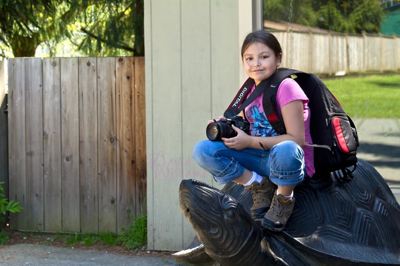 1. I love the entire look of this, a young girl resting on a huge turtle, carrying a huge camera and a huge backpack. (with a huge smile). She looks so natural. Watch out National Geographic.