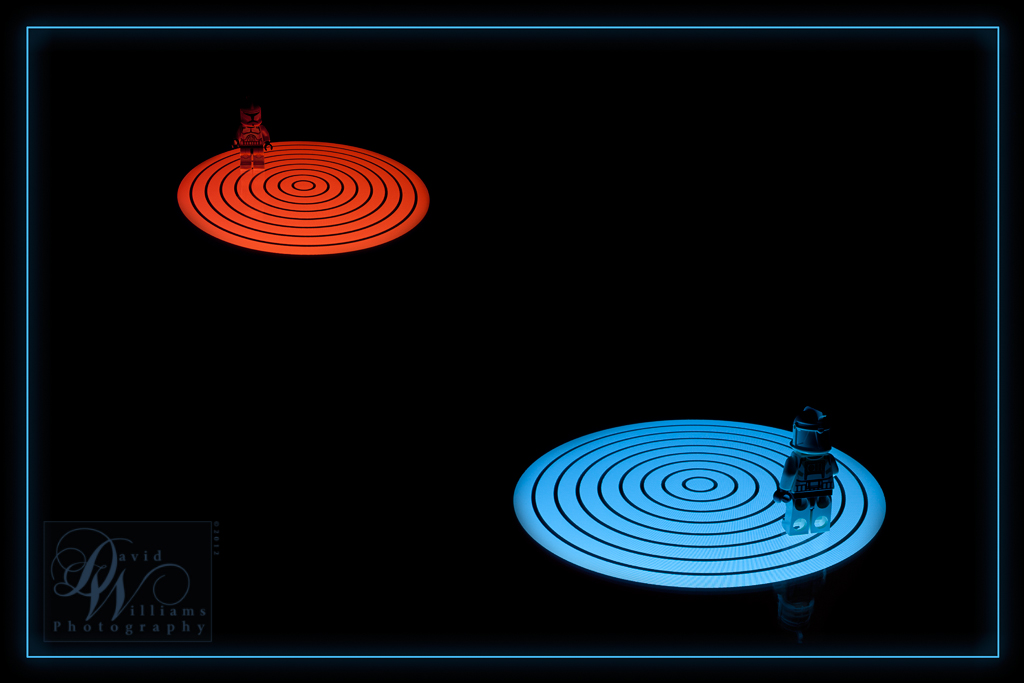 Come on…Tron meets Star Wars…it was bound to happen! About this image, it’s actually a composite of two images. One image is of the blue ring, the other image the red ring (I made the red ring layer “smaller” so it gives some depth). The little dudes are standing on an iPad2 using this cool little app called Softbox Pro. As it sounds, it’s a “softbox”…on your iPad (wow I am good eh)! I haven’t actually tried it as a softbox as this image immediately popped into my head when I was checking out the various settings. Yes, I plan on using the app as intended, as a softbox (stay tuned for that one).